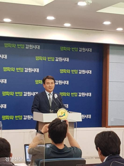 김진태 강원도지사 당선인이 7일 오전 강원도청 브리핑룸에서 기자회견을 열고 인수위원회 운영과 관련된 내용을 발표하고 있다. 최승현 기자 |