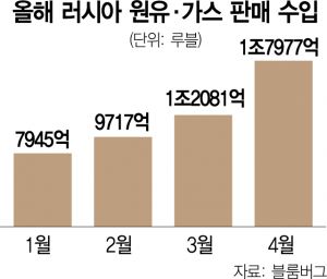 원자재 정보 업체 케이플러에 따르면 세계 3위의 원유 수입국인 인도는 5월 러시아산 석유를 하루 평균 84만 배럴씩 구매하면서 4월보다 2배 이상 수입을 늘렸고 6월에도 이런 추세가 이어질 가능성이 높다. 중국도 올 3월부터 5월까지 3개월 동안 전년 동기 대비 3배가량 많은 1450만 배럴 규모의 러시아 원유를 사들였다. 블라디미르 푸틴 러시아 대통령은 이날 한 행사에서 “서방은 러시아산 원유와 가스를 수년간 스스로 끊지 못할 것”이라고 호언장담하기도 했다.
