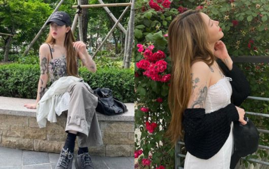 특히 민소매 아래로 드러난 백예린의 타투가 시선을 사로잡는다. 팔 한가득 용과 꽃모양 타투가 도배돼 있어 남다른 포스를 발산하고 있다.