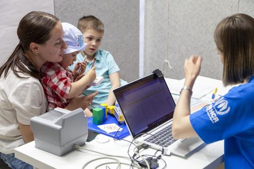 우크라이나 난민 가족이 폴란드에서 유엔난민기구 직원과 상담을 하고 있다. [유엔난민기구 제공] |