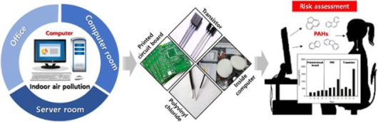 또 컴퓨터 부품에서 PAHs를 직접 추출한 결과 실험에 사용한 모든 컴퓨터 부품에서 PAHs가 검출됐다. 회로기판과 전선피복 등의 부품을 밀폐용기에 담은 뒤 섭씨60도로 가열한 실험에서도 가열 시간이 길수록 PAHs 농도가 높게 나왔다. 연구팀은 가열 과정에서 컴퓨터 부품에 불순물로 포함된 PAHs가 휘발돼 나온다고 분석했다.