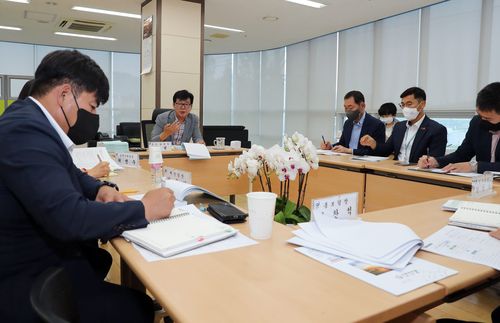(장흥=연합뉴스) 손상원 기자 = 김성 장흥군수 당선인이 부서별 업무보고로 군정 인수 절차에 들어갔다.