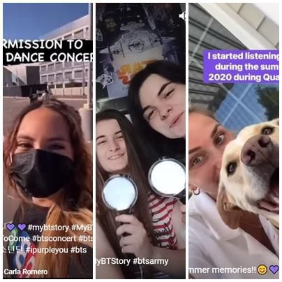 방탄소년단 미국, 프랑스 팬들이 '마이 방탄소년단 스토리'란 제목으로 10일 방탄소년단 새 앨범 '프루프' 발매를 맞아 유튜브에 올린 영상들. 미국인 케이티 파니(오른쪽)씨는 2020년 여름 자가격리할 때 방탄소년단 노래를 처음 듣고 활력을 얻었다고 말했다. |