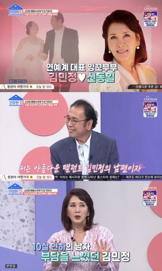 13일 방송된 TV조선 '건강한 집'에는 배우 김민정과 남편 신동일 씨가 출연했다.
