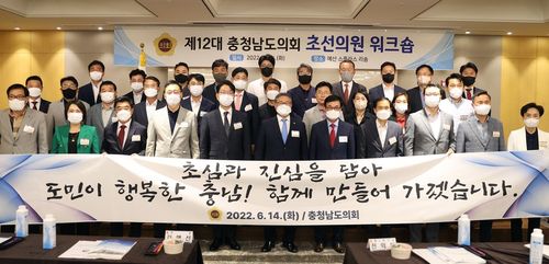 (홍성=연합뉴스) 조성민 기자 = 충남도의회는 14일 예산 스플라스 리솜에서 초선 당선인 32명을 대상으로 의정활동 역량 강화를 위한 워크숍을 열었다.