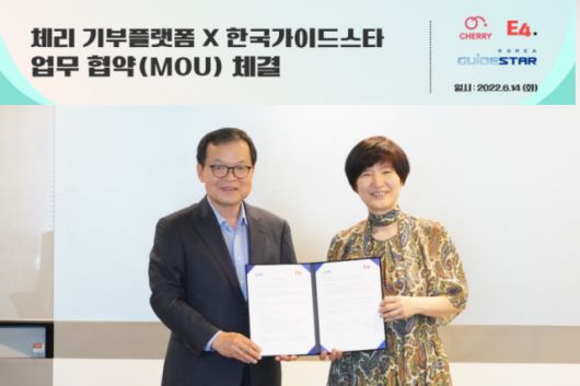 14일 기부플랫폼 ‘체리’의 개발·운영사인 ㈜이포넷은 이날 (재)한국가이드스타와 ‘투명한 기부문화 정착과 기부 활성화를 위한 협력’ 업무협약(MOU)을 체결했다고 밝혔다.