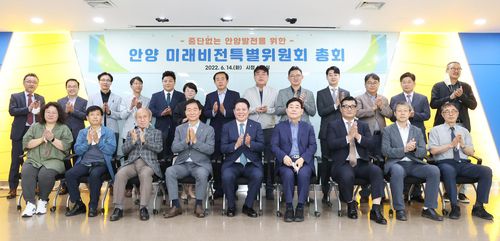 (안양=연합뉴스) 김인유 기자 = 6·1지방선거에서 최대호 시장이 연임에 성공한 경기 안양시의 민선 8기 준비를 위한 '안양 미래비전특별위원회'가 14일 안양시청에서 출범했다.