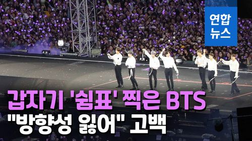 (서울=연합뉴스) 세계 최정상 고지에 서있는 그룹 방탄소년단(BTS)이 데뷔 9년 만에 단체활동을 잠시 중단하겠다는 선언을 했습니다.
