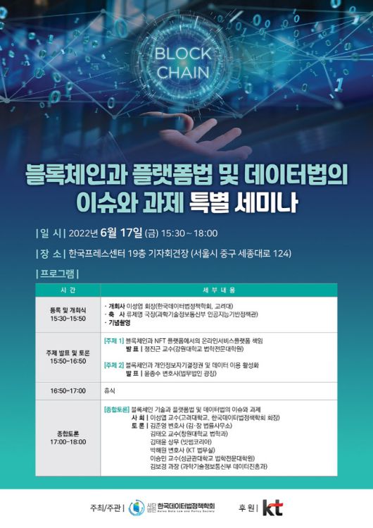 한국데이터법정책학회 ‘블록체인과 플랫폼법·데이터법’ 세미나 포스터. |