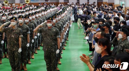 가족들이 직접 태극마크와 이등병 계급장을 달아주는 순서에서는 애써 참았던 눈물을 쏟아냈다. 여기저기에서 두 팔을 벌려 아들을 꼭 끌어안는 모습도 눈에 들어왔다.