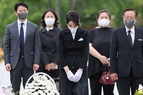 노무현 전 대통령 묘역 참배하는 김건희 여사 |