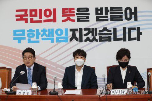 이준석 대표는 회의가 끝난 뒤 기자들과 만나 "사적 경로로 정보들이 유통되는 상황 자체에 대해 문제의식을 갖고 있다는 논의가 있었다"고 전했다.