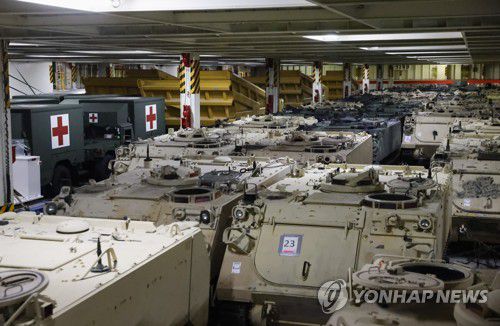 화물선에서 우크라이나 전달을 준비중인 장갑차량들 |