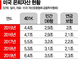 여기에 퇴직연금 적립률이 자동으로 올라가는 제도까지 도입하면서 퇴직연금 시장이 크게 성장하게 됐다. 퇴직연금 적립률이 올라갈수록 복리 효과로 수익률도 늘어날 수 있다. 이 같은 노력 끝에 미국 401K의 연평균(2013~2019년) 수익률은 9.49%에 달한다.