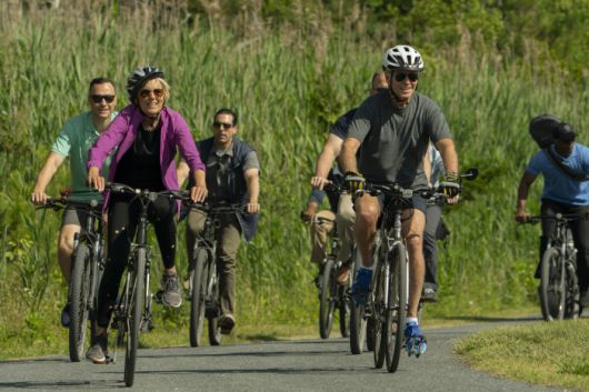 백악관 공동취재단에 따르면 전날 밤 델라웨어주 레호보스 비치 인근 개인 별장에 간 바이든 대통령은 이날 아침 부인 질 바이든 여사와 함께 케이프 헨로펀 주립공원에서 자전거를 탔다. 운동복 차림에 흰색 헬멧을 쓴 바이든 대통령 뒤로 경호원들이 역시 자전거와 전동 카트 등을 타고 수행했다.