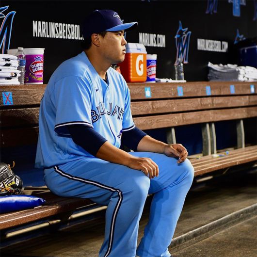 토론토 류현진이 19일 팔꿈치 인대접합 수술을 받아 재활 기간이 최소 1년 이상 소요될 전망이다. 류현진이 메이저리그 경기 도중 더그아웃에 앉아 있는 모습. 토론토 블루제이스 인스타그램 |