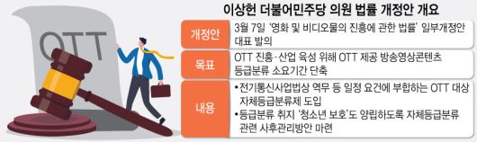 자체등급분류제는 OTT 사업자가 영상물 등급을 자체적으로 지정하고 사후관리를 받는 제도다. OTT 법적지위와 동일하게 2년 전 디지털 미디어 생태계 발전방안에서 과학기술정보통신부, 문화체육관광부, 방송통신위원회 등 관계부처가 약속한 제도지만 2년 넘게 답보상태다.