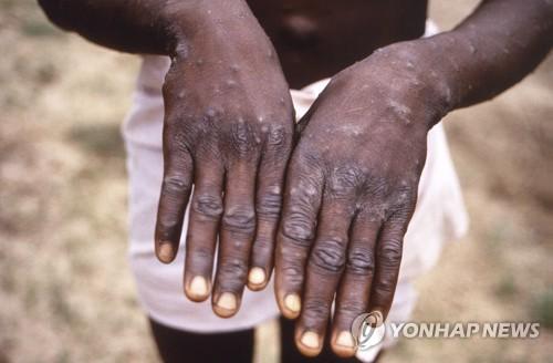 원숭이두창 감염자의 손. |