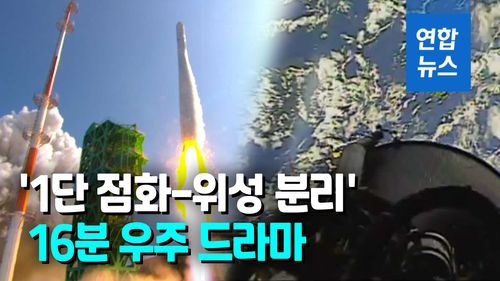 (서울=연합뉴스) 한국형 발사체 누리호(KSLV-II)가 21일 2차 발사에서 목표한 고도 700㎞에 도달하는데 16분 우주 드라마를 연출했습니다.