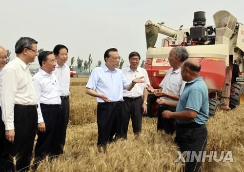 21일 허베이성 밀밭 수확 현장 시찰하는 리커창 중국 총리 |