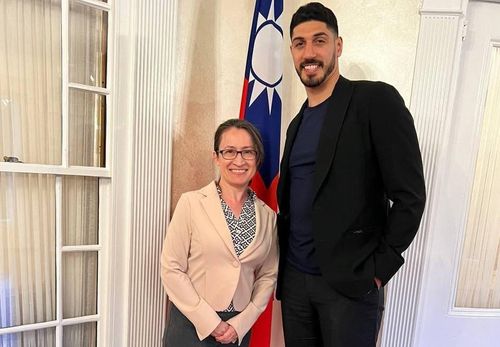 (서울=연합뉴스) 정재용 기자 = 샤오메이친(蕭美琴) 미국 주재 대만대표부 대표가 에네스 칸터 프리덤 전 미국프로농구(NBA) 선수와 만나 인권 문제에 대해 논의했다.