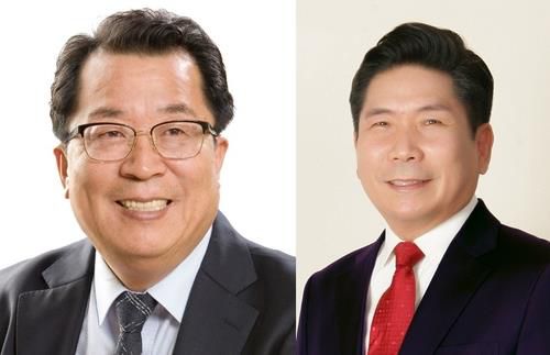 이상천 제천시장(좌측)과 김창규 제천시장 당선인 |