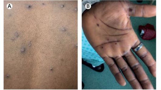 원숭이두창 Skin and soft tissue manifestations of monkeypox *출처: The Lancet Infectious Disease. May 24, 2022. DOI: 10.1016/S1473-3099(22)00228-6 |