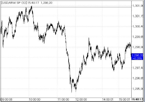 24일 서울외국환중개에 따르면 환율은 전 거래일 종가(1301.80원) 대비 3.60원 하락한 1298.20원에 거래를 마쳤다. 이날 환율은 전일 대비 1.80원 하락한 1300.0원에 시작해 오전 10시께 1301.90원까지 오르며 장중 상승 반전했으나 글로벌 달러화 약세 흐름 속에서 외환당국의 미세조정(스무딩 오퍼레이션), 국내증시 상승폭 확대 등이 겹치면서 1295원선까지 하락하기도 했다.