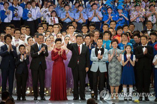 (EPA=연합뉴스) 2017년 6월 30일 홍콩을 찾은 시진핑(왼쪽에서 다섯번째) 중국 국가주석. [연합뉴스 자료사진] 2022.6.25. |