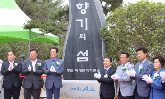 지난 24일 전남 신안군 증도대교 인근에서 축구장 21개 면적의 미세먼치 차단숲 조성을 알리는 준공식이 열렸다. [사진 제공 = 전남도] |
