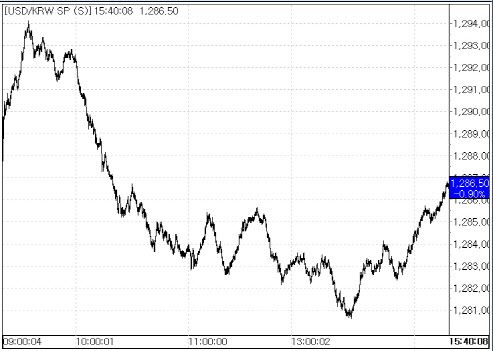 27일 서울외국환중개에 따르면 환율은 전 거래일 종가(1298.20원) 대비 11.70원 급락한 1296.50원에 거래를 마쳤다. 이날 환율은 전일 대비 8.20원 내린 1290.0원에 시작해 낙폭을 4원 가량 줄이기도 했으나 오후들어 다시 하락폭을 키우더니 장중엔 1280.60원까지 떨어지기도 했다. 환율은 지난주 마지막 거래일인 24일 3.60원 하락해 1300원대에서 1290원대로 내리더니 2거래일 연속 하락해 1280원대로 레벨을 낮춘 모습이다.