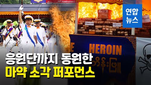 (서울=연합뉴스) 미얀마 쿠데타 군사정권이 8천억원대 규모의 마약을 소각했습니다.