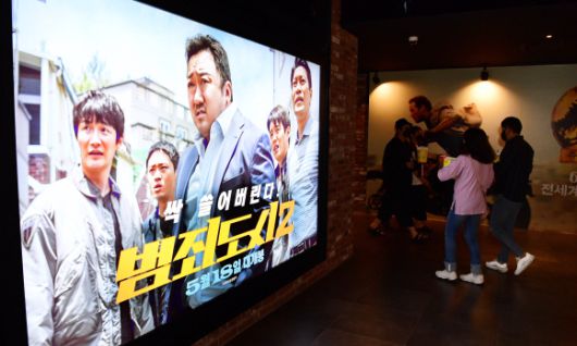 마동석·손석구 주연의 범죄액션 영화 ‘범죄도시 2’가 관객수 1천만 명을 돌파했다. 코로나19 엔데믹(전염병의 풍토병화) 시대 들어 첫 천만영화다. 사진은 12일 서울 시내 한 영화관. 2022.6.12 정연호 기자 |