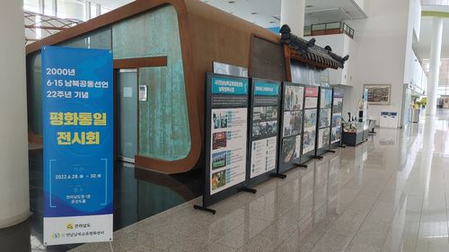 (무안=연합뉴스) 장덕종 기자 = 사단법인 전남남북교류평화센터는 6·15 남북정상회담 22주년을 기념해 28일부터 30일까지 전남도청 1층 윤선도 홀에서 전시회를 개최한다.