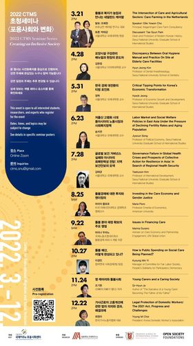 매달 한 차례씩 열리는 세미나는 저출산 고령화, 돌봄 노동, 사회복지정책 등 지구촌 주요 현안에 대해 국내외 학계와 시민단체의 의견을 듣고, 지속가능한 미래를 만들어 갈 방안을 논의한다.