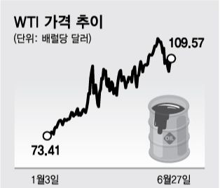 영국 브렌트유 8월 인도분 선물가격도 이날 1.7% 오른 115.09달러를 나타냈다. 거래가 더 많은 9월 인도분 선물가격은 1.7% 상승한 110.98달러로 마감했다.