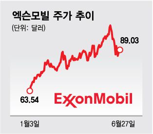 지난주까지 유가가 약세를 보이자 정유주 주가도 급락했다. 미국 정유 대장주인 엑슨 모빌은 이날 유가 상승에 덩달아 2.4% 오르며 89.03달러로 마감했다.