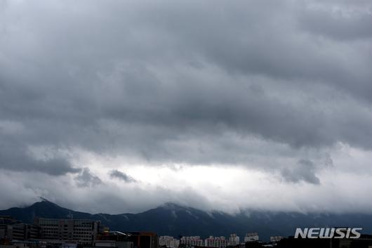 [춘천=뉴시스] 김경목 기자 = 23일 오후 올여름 첫 장맛비가 내리고 있는 강원도 춘천시 하늘이 온통 짙은 먹구름으로 뒤덮였다. 2022.06.23. photo31@newsis.com |