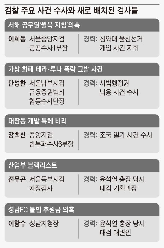 검찰 주요 사건 수사와 새로 배치된 검사들 |