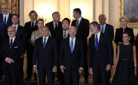스페인 국왕 내외 주최 만찬 참석한 윤석열 대통령 - 윤석열 대통령이 28일(현지시간) 스페인 마드리드 왕궁에서 열린 펠리페 6세 스페인 국왕 내외 주최 만찬에 참석. 조 바이든 미국 대통령 등 참석자들과 기념촬영을 하고 있다. 2022.6.29 연합뉴스 |
