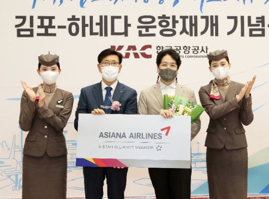 아시아나항공은 한국공항공사와 함께 이날 김포공항 국제선 청사에서 김포-하네다 노선 재운항 기념 행사를 열었다. 아시아나항공은 출발편 탑승객 중 1명에게 김포-하네다 노선 왕복 항공권을 증정하고, 탑승객 전원에게는 그립톡, 아시아나 케어플러스 키트(방역용품), 필기구 등 다양한 기념품을 선물했다.