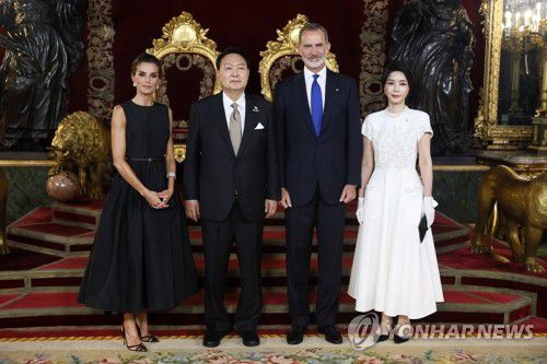 스페인 국왕 내외 주최 만찬 참석한 윤석열 대통령 부부 |