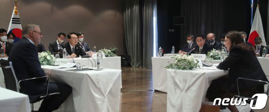윤 대통령과 기시다 총리는 이날 '한국·일본·호주·뉴질랜드간 4자 회동에 이어 한·미·일 정상회담, 나토 회원국·파트너국 정상회의에서도 만나 유대감을 넓힐 수 있게 된다.
