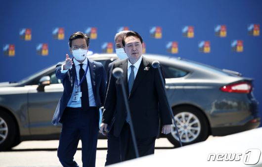 윤석열 대통령이 29일 오후(현지시간) 나토 동맹국-파트너국 정상회의가 열리는 마드리드 이페마(IFEMA)에 도착하고 있다. (대통령실사진기자단) 2022.6.29/뉴스1 © News1 오대일 기자 |