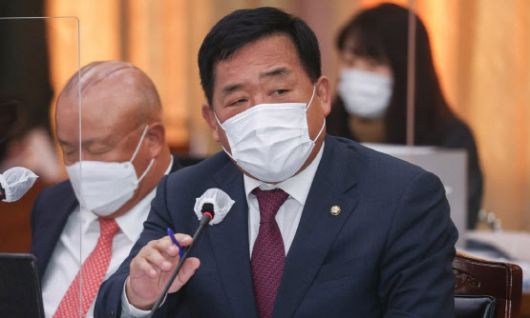 박성민 국민의힘 의원이 지난 20일 경기도 수원 경기도청에서 열린 국회 국토교통위원회의 경기도에 대한 국정감사에서 이재명 경기도지사에게 질의하고 있다.(사진=연합뉴스) |