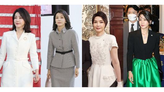 윤석열 대통령의 부인 김건희 여사가 스페인 마드리드에서 첫 외교 무대 데뷔전을 치르고 30일 오후 귀국길에 오른다. 김 여사는 이번 스페인 순방 내내 TPO(시간ㆍ장소ㆍ상황)에 따라 다양한 의상을 소화했는데 특히 옷깃에는 항상 태극기 배지를 착용해 눈길을 끌었다.