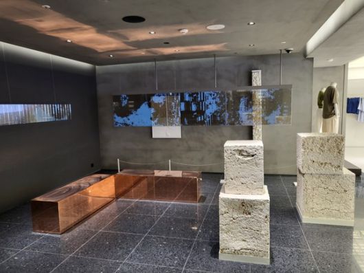 우선 지하 1층엔 남성,언더웨어,코스메틱 등을 판매하는데 계단을 내려가 가장 먼저 등장하는 건 예술 조형물이다. 사용 후 버려지는 설치물들을 아티스트들과 협업해 작품으로 전시하는 '비사이클' 프로젝트 일환이다. 이 공간은 매 분기마다 주제를 바꿔 진행된다. 맞은편 역시 대형 미디어월이 가로형으로 위치해 웅장함을 더한다.