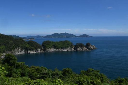 통영에서 가장 높은 천황산(467m)이 위치해 있는 두미도는 지도에서 보면 쉼표 모양과 비슷하다. |
