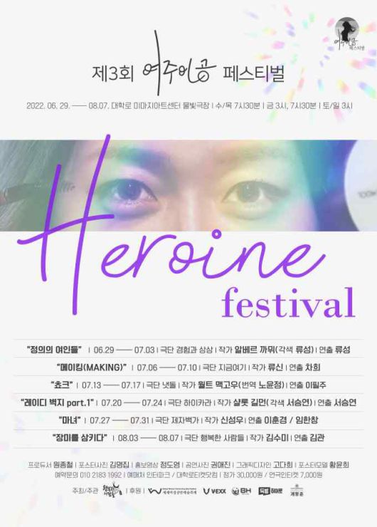 [서울=뉴스핌] 조용준 기자 = 올해 3회째를 맞은 여주인공 페스티벌에 최종 선정된 6개의 연극 단체들이 6월 29일부터 8월 7일까지 총 6주간 대학로 미마지아트센터 물빛극장에서 관객들을 만난다.