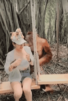 이 여성이 그네에 앉아 카메라를 응시하기 시작했을 때, 오랑우탄 한 마리가 그녀의 뒤에서 모습을 드러냈다. 이 오랑우탄은 여성 등 뒤로 다가가더니 마치 인사를 하는 듯한 몸짓을 취했고, 이내 자신의 앞발로 여성 관광객의 신체를 만지기 시작했다.